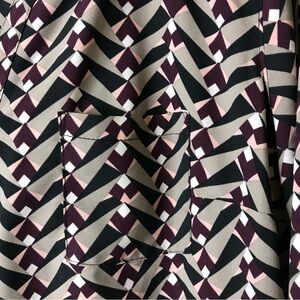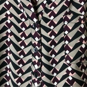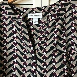 Pure Energy Womens Size X Blouse Geometric Print V Neck Half Button Up Cuffs