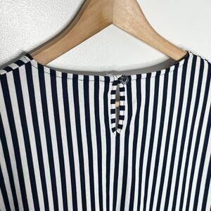 Pure Essence Short Sleeve Top Womens Medium Navy White Stripe Boxy Casual