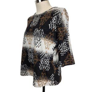 Pure Essence Urbanology Stretch Sweater Knit Top Medium Black Brown White Nordic