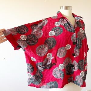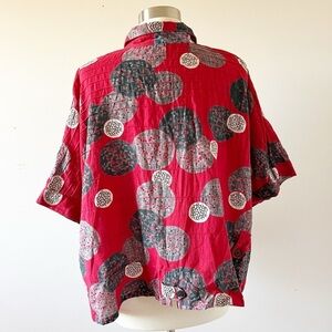 PureFit by Mona Lisa 100% cotton breezy boxy top. Red art to wear geometric circle print.