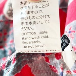 Pure Fit Mona Lisa OS Boxy Lagenlook Kimono Shirt Red 100% Cotton Japanese Geo