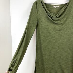 Pure + Good Anthropologie (S) Draped Neck Tunic Mini Dress Green