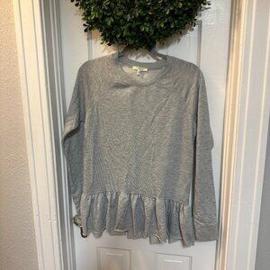 Pure Good Women's Gray Sweatshirt w/Ruffle Bottom-Size Medium
