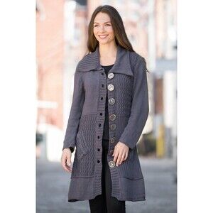 Pure Handknit Cardigan Sweater Patchwork Cotton Stretch Button Front Size M/L