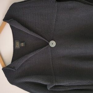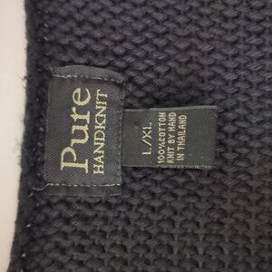 Pure Handknit Cotton Boho Minimalist Lagenlook Black Pullover Sz L Modest