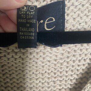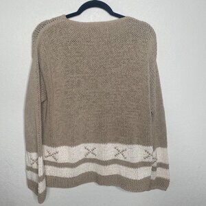 Pure Handknit Knit Chunky Cardigan Sweater Womens L/XL Beige Brown Thick Cotton