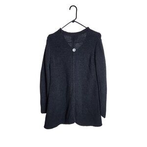 Pure Handknit Navy Blue Cardigan Sweater With Single Button Closure M/L