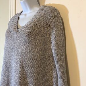 Pure Hand-knit Pull Over V-Neck Cotton Sweater, L