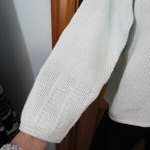 Pure Handknit Seafoam Green V-Neck Sweater 100% Cotton Button Details Medium