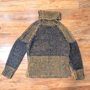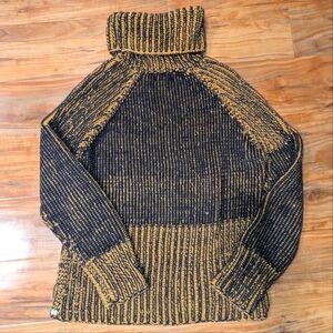 Pure Handknit Two-Tone Turtle Neck Black Gold Cable Knit Sweater Women's Small