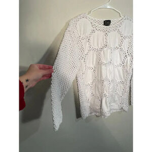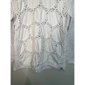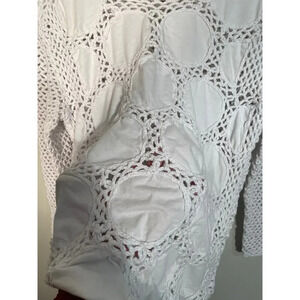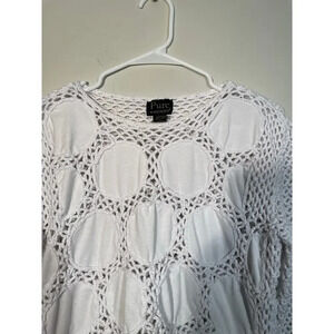 Pure Handknit White Mixed Media Open Knit Polka Dot Top
