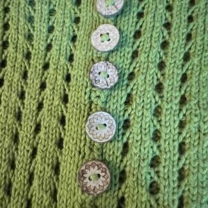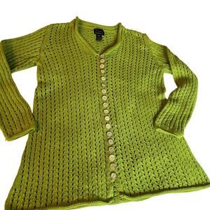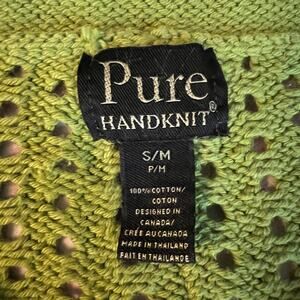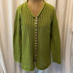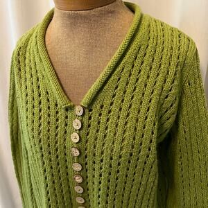 Pure Handknit Women's Canadian Loose Knit Cotton Green Sweater Cardigan M
