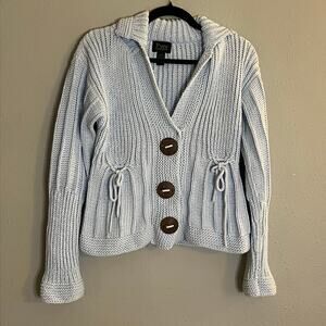 Pure Handknit Women’s Cardigan XS/S Light Blue Cotton Hand Knit Button Sweater