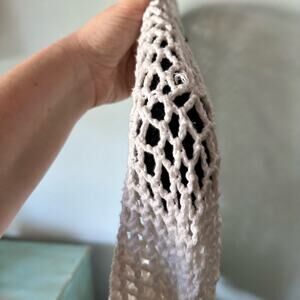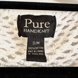 Pure Handknits Cotton Open Crochet Cardigan Sweater Rhinestone Buttons S/M Artsy