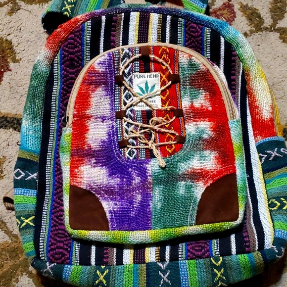 pure hemp zippered back pack.THC free made in nepal.