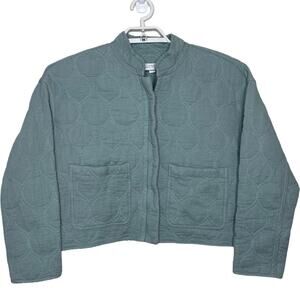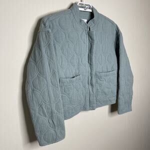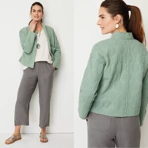 Pure J. JILL Double Gauze Quilted Jacket Zip Up Boxy Sage Green Cotton Artsy S.