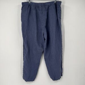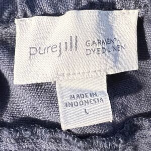 Pure J Jill 100% Linen Pants L Blue Straight Leg Relaxed Lagenlook Beach Cruise