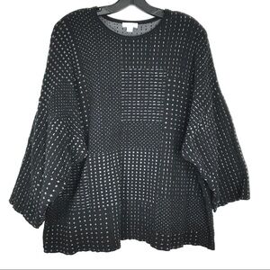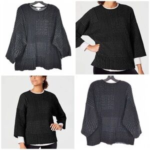 J. Jill Pure Jill Textured Kimono Sweater in black, cotton blend, cropped sleeves, boxy shape, oversized, soft quilt texture.