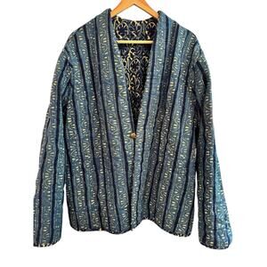 J. Jill Pure Jill Block-Printed Reversible Jacket in Dark Blue Stamped Medallion Mix Size 2X Plus