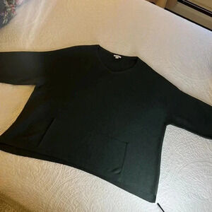 Pure J Jill Cotton Sweater Boxy Womens Large Green Kimono Sleeves Lagenlook