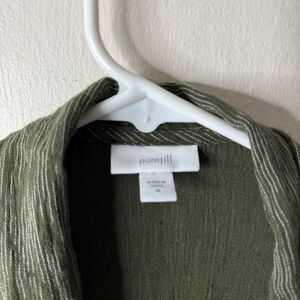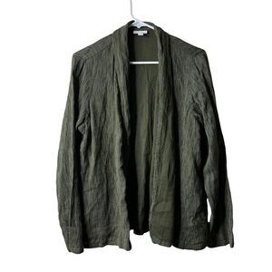 Pure J Jill Green Crinkle Cotton Gauze Open Front Cardigan Topper
