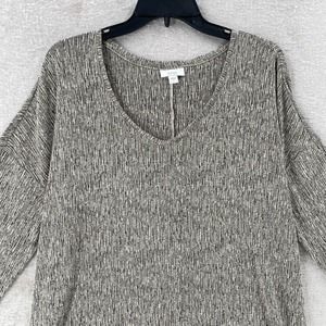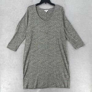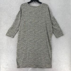 Pure J Jill Linen Blend Shift Dress LARGE Marled Gray 3/4 Sleeve Drop Shoulder