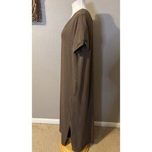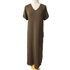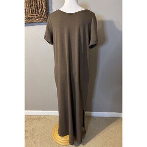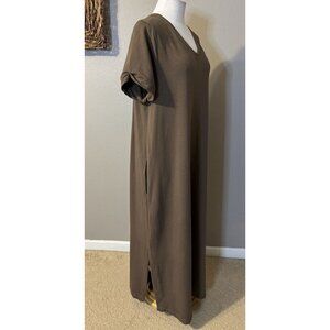 Pure J Jill Maxi Dress L Large Brown Pockets Short Sleeve Modal Cotton Washable