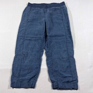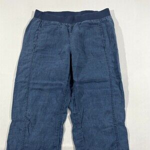 Pure J Jill Pants Women Blue Indigo Linen Wide Leg HI Rise Elastic Waist Sz S