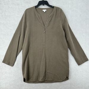 Pure J Jill Shirt Dress Women MEDIUM Taupe Textured Seersucker Laganlook Neutral
