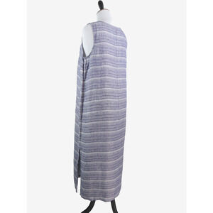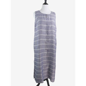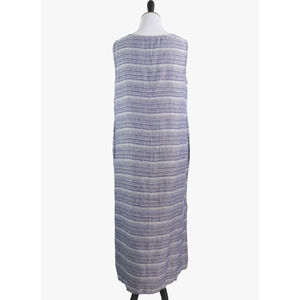Pure J Jill Size L Woven Stripe Linen Maxi Dress Keyhole Neck Blue