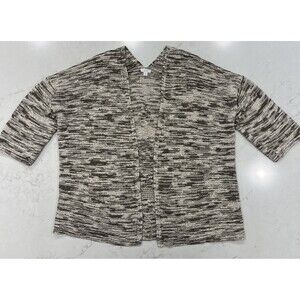 J Jill Pure Jill Sz L Open Front Cardigan Taupe Cream 3/4 Sleeve Layer Boho EUC