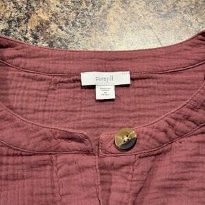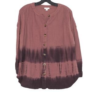Pure J Jill Top Gauze Y2K Minimalist Lagenlook Lagom Cottage Tie Dye Button PM