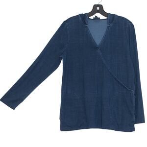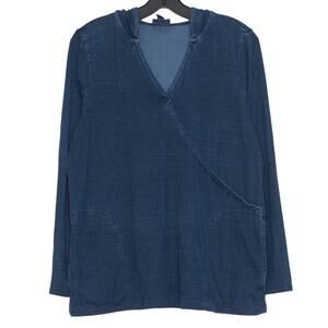 Pure J Jill Top Hooded Minimalist Cottagecore Boho Normcore Indigo Blue Small