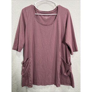 Pure J. Jill Two Pocket Knit Tunic Sz L Petite Pink Casual Short Sleeve Cottton