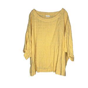 Pure J Jill Women’s 4X Tunic Top 100% Cotton Textured Yellow Oversized Plus Size