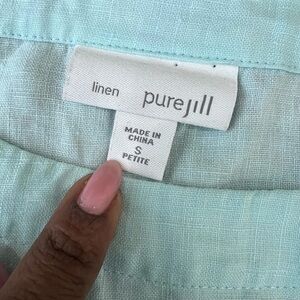 Pure Jill 100% Linen Light Blue Sleeveless Front Pockets Top Blouse Size P/S