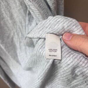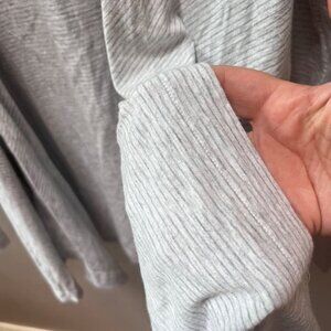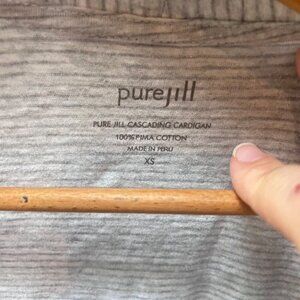 This Pure Jill cardigan offers a lightweight, breathable fit made from premium Pima cotton. Ideal for layering, its cascading design enhances any outfit. Light gray stripes.