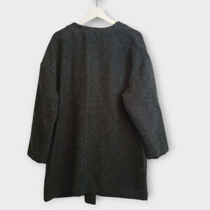 Pure Jill Coat Women Large Petite Gray Bouclé Wool Blend Open Chore Basic Jacket