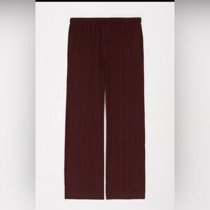 pull-on pants in a rich plum color. crinkle pleated texture, wide-leg , soft and sustainable Lenzing™ EcoVero™ viscose blend