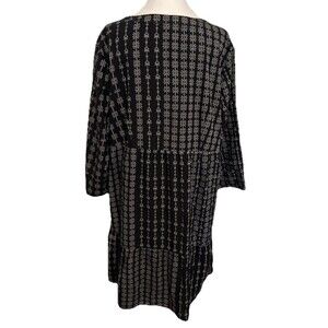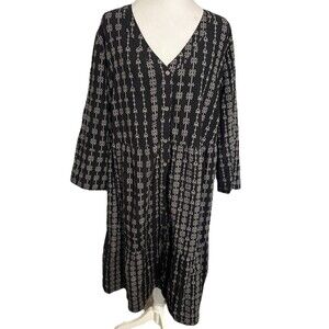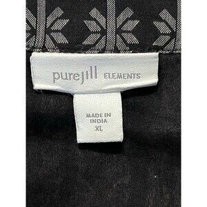 Pure Jill Elements Tiered Midi Dress XL Button Front Black Gray Cottage