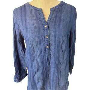 Pure Jill Indigo Blue Blouse 100% Cotton Button Front Petite S
