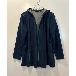 Pure Jill Indigo Blue Soft Denim Open Front Hooded Jacket Womens Large (1882)