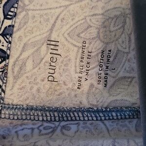 Pure Jill -J Jill Blue Floral Printed V Neck 3/4 Sleeve Tee 100% Cotton - L