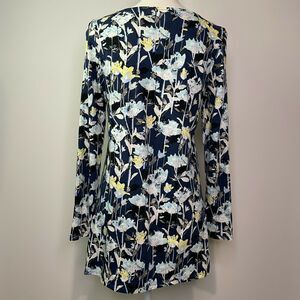 Pure Jill J. Jill Floral Tunic Modal Stretch Kangaroo Pocket Blue Women's Medium