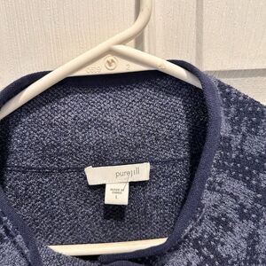 Pure Jill J. Jill Intarsia Jacquard Snap Button Textured Cardigan Blue Large
