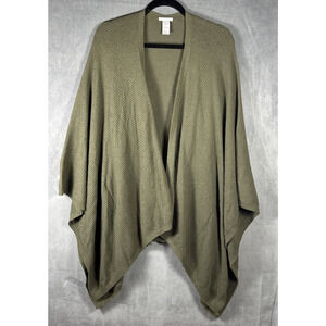 Pure Jill J. Jill One Size Cotton Blend Olive Green Knit Open Front Cape Poncho