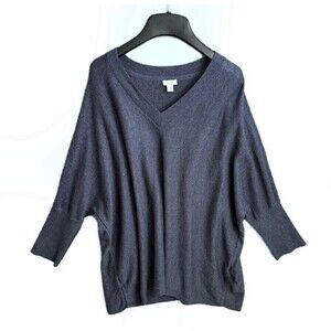 Pure Jill J Jill Oversized V-Neck Sweater Sz L Heather Blue Gray Pullover