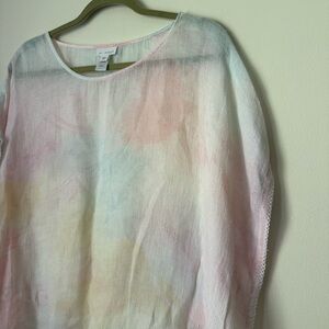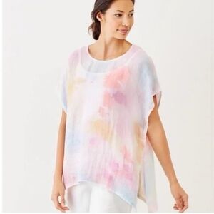 Pure Jill J Jill Poncho 100% Linen Pastel Watercolor Top Loose Boxy, size M-L