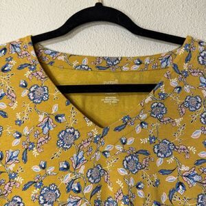 Pure Jill J Jill Yellow Floral V-Neck Top Printed