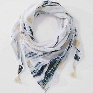 Our lightweight scarf has a free-spirited tie-dye print, textured jacquard-woven accents throughout and tassels at the corners.